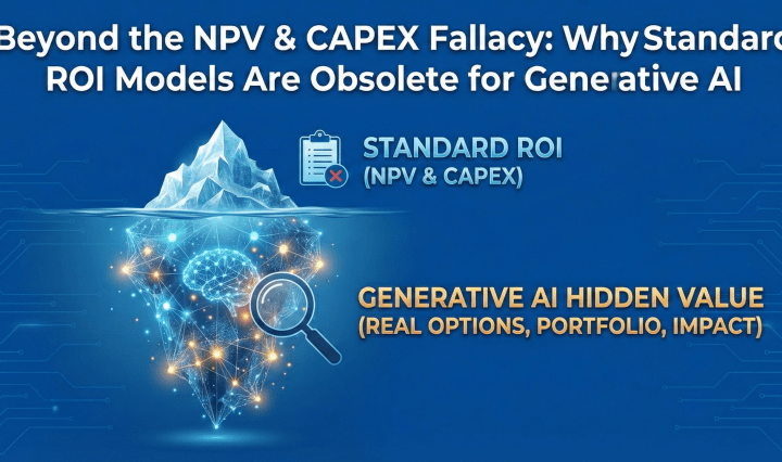 For decades, the Net Present Value (NPV) spreadsheet has been the gatekeeper of corporate innovation in North America. In the predictable worlds of financial services, legacy software updates, or non-profit capital campaigns, this deterministic approach worked. You input a cost, … Continue reading Beyond the NPV & CAPEX Fallacy: Why Standard ROI Models Are Obsolete for Generative AI