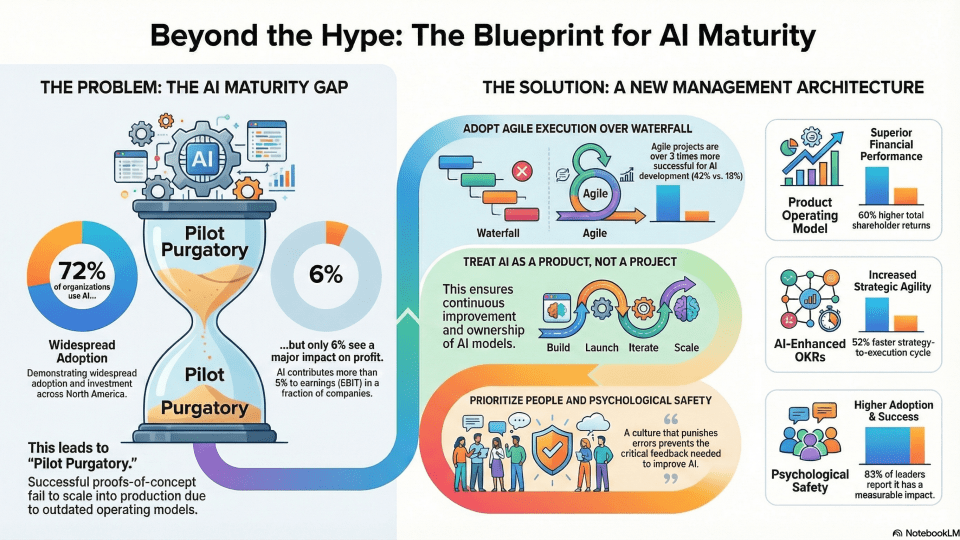 Practical leadership shifts to move AI from pilot projects into sustained, high-value business outcomes. AI adoption no longer fits into the “install and train” playbook of past digital or Agile waves. The organizations that convert AI experiments into durable advantage … Continue reading The New Leadership Playbook: Governing, Scaling, and Humanising AI Transformation