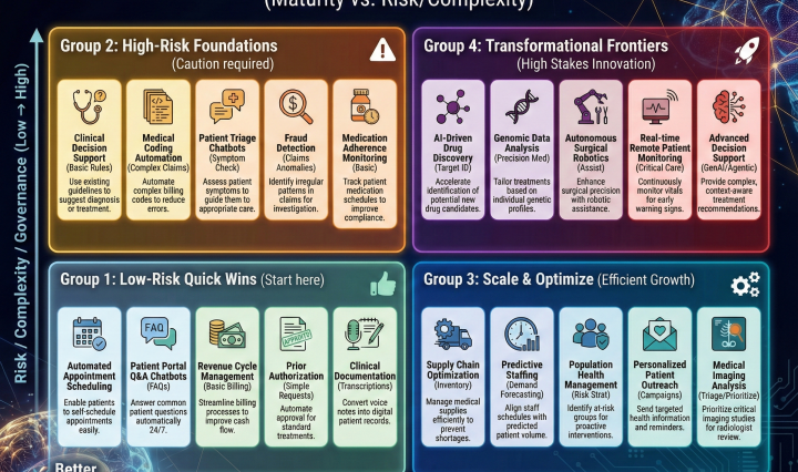 The healthcare and life sciences sectors in 2025 stand at a technological inflection point that represents the most significant paradigm shift since the meaningful use era of electronic health record adoption. For the Chief AI Officer (CAIO) and senior technology … Continue reading Research: Top Healthcare AI Use Cases by Org Maturity