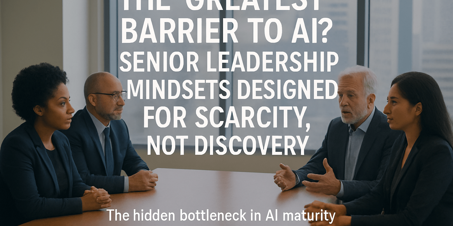Most large organizations aren’t held back by technology or talent shortages—they’re held back by senior leaders who resist evolving their own mindset maturity, require unreasonable certainty, expect perfect plans, and pursue linear progress. The real accelerator is the opposite: leaders who can responsibly embrace uncertainty, navigate ambiguity, and model adaptive decision-making.