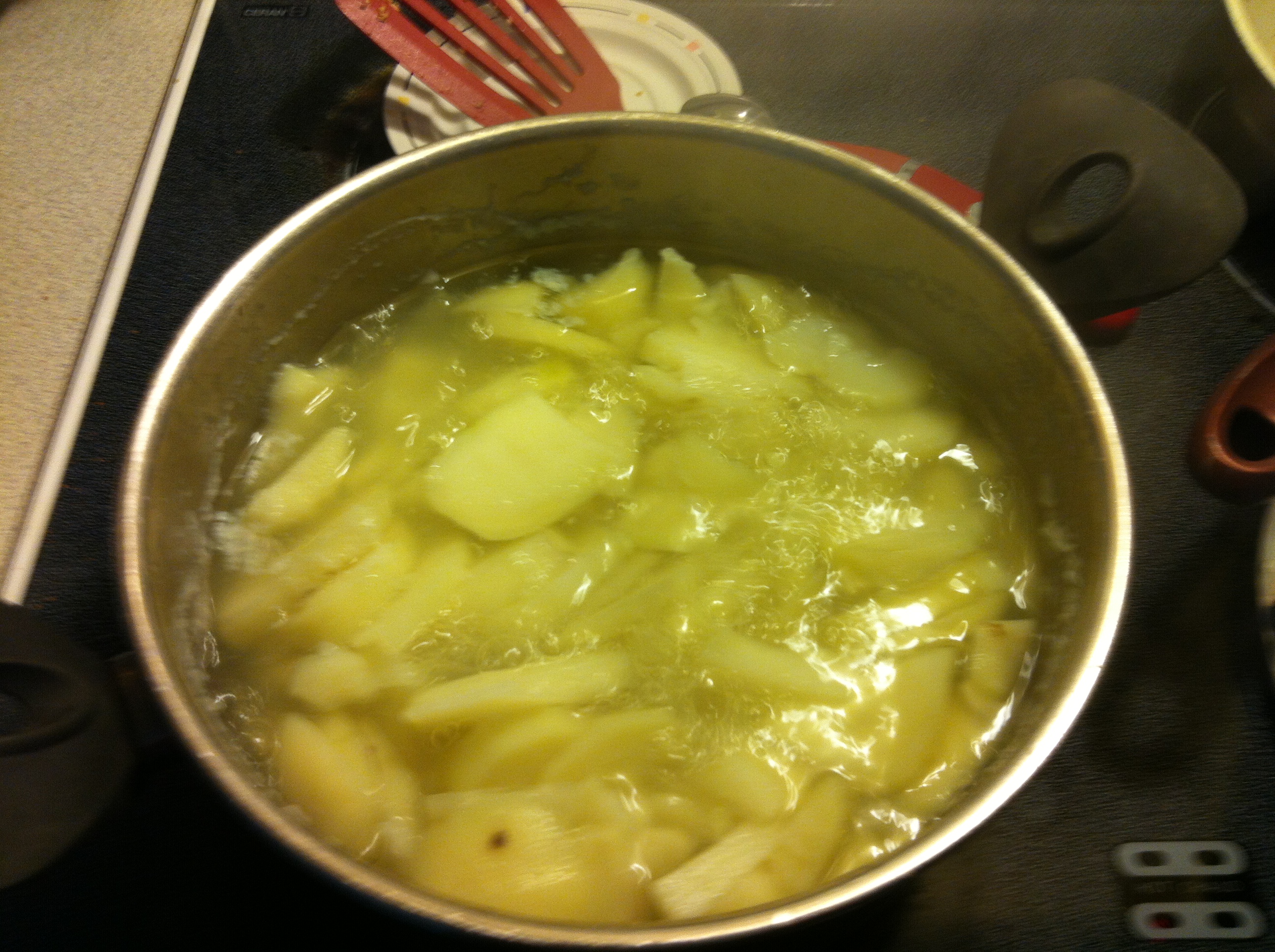 - 6 large potatoes (healthy nuvo = 4 red + 2 sweat potatoes / high impact = 6 Russets)